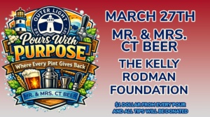 Our third Pours With Purpose night is coming up, and this one is going to be a special one. Join us Friday, March 27th from 5–9 PM as Kevin and Mr. & Mrs. CT Beer step behind the bar to pour for a cause.