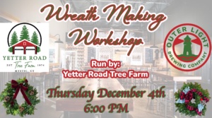 Get into the holiday spirit with us here at Outer Light! We’re teaming up with our friends from Yetter Road Tree Farm for a cozy, creative night of wreath making, craft beer, and Christmas cheer.